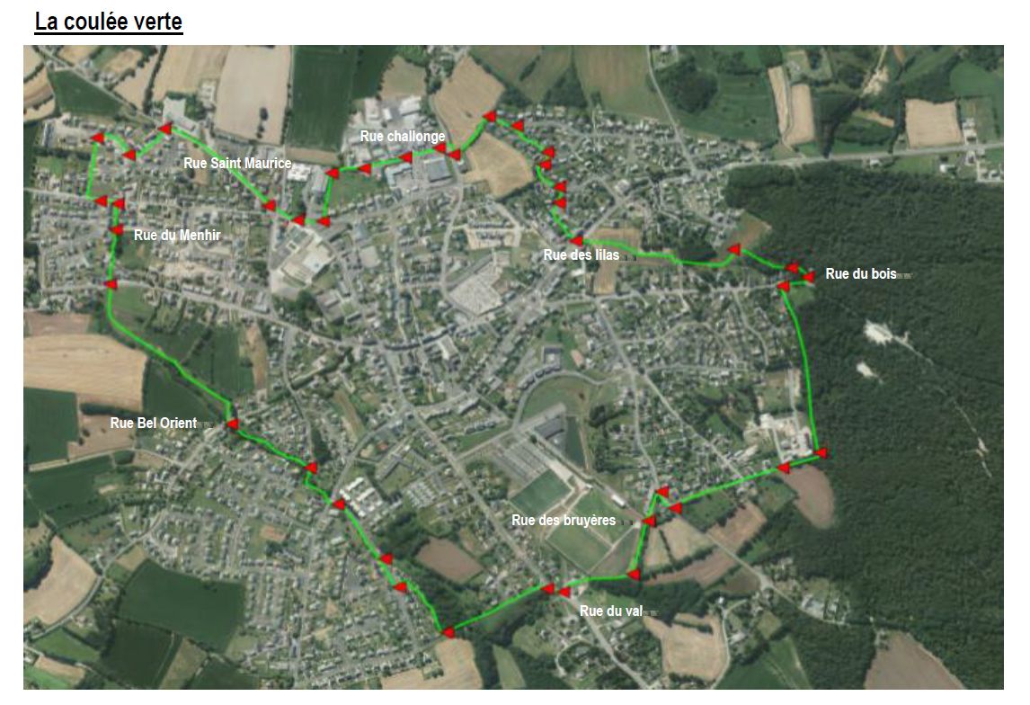 Le projet de la coulée verte a été lancé en 2012 – il a fallu le faire évoluer pour le faire connaitre et le rendre accessible au plus grand nombre. Le point de départ « officiel » de cette marche se situe au parking du château d’eau au bois de Plédran, mais il est possible de le prendre à n’importe quel endroit du parcours puisqu’il ceinture la couronne urbaine de la commune.